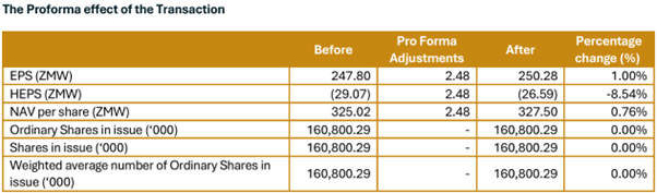 The company projects modest positive effects from the ZNEC investment: earnings per share increasing by 1% from ZMW 247.80 to ZMW 250.28 and net asset value per share rising 0.76% from ZMW 325.02 to ZMW 327.50. Yet these proforma figures capture only the direct returns from ZNEC's operations. The structure also creates a self-reinforcing dynamic: as ZNEC delivers more reliable, affordable electricity across constituencies, the mining companies in ZCCM-IH's existing portfolio—many of which grapple with power costs and load-shedding disruptions—stand to reduce operational expenses and improve margins, generating stronger dividends back to ZCCM-IH as a shareholder. The energy investment thereby supports the mining investments rather than merely diversifying away from them.